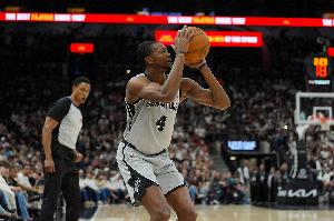 上半場比賽,馬刺后衛(wèi)福克斯攻防兩端打得高效且輕松,場上作用顯著,他出戰(zhàn)12分鐘,5中4,三分1中1拿到9分3籃板1助攻2搶斷,正負(fù)值+30!