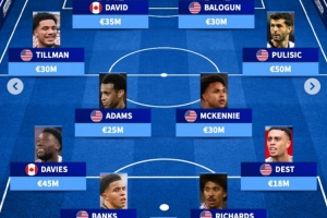 中場(chǎng):蒂爾曼(3000萬歐)、泰勒·亞當(dāng)斯(2500萬歐)、麥肯尼(3000萬歐)、普利西奇(5000萬歐)