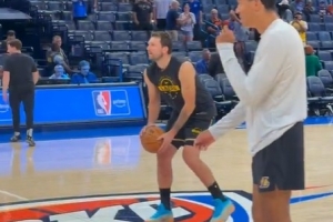 GIF-東契奇賽前踩著Logo 兩記中場超遠(yuǎn)三分連續(xù)命中
