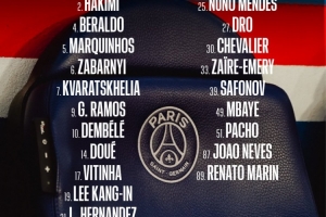 前鋒:7-克瓦拉茨赫利亞、9-貢薩洛·拉莫斯、10-登貝萊、14-杜埃、49-姆巴耶