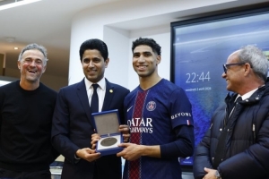 賽后,巴黎圣日耳曼為阿什拉夫頒發(fā)了200場(chǎng)紀(jì)念獎(jiǎng)?wù)隆0屠柚飨{賽爾、主教練恩里克、體育總監(jiān)坎波斯參與了本次儀式。