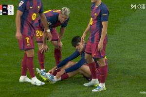 體育資訊04月05日訊 西甲第30輪,馬競(jìng)對(duì)陣巴薩。60分鐘,貝爾納爾受傷坐在地上,被孔德?lián)Q下。