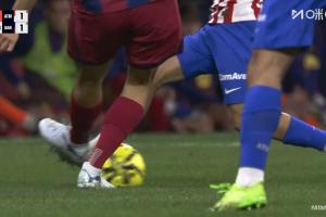 下半場比賽剛剛開始,馬丁拼搶時蹬踏阿爾馬達(dá),主裁判一開始對其出示直紅。回放顯示,馬丁解圍先踢到皮球。VAR介入,主裁親自觀看回放后改判為黃牌!