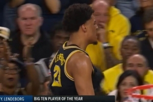 目前比賽上半場(chǎng),密歇根大學(xué)主力也是熱門新秀倫德博格在對(duì)抗過(guò)程中傷到腳踝,雖然堅(jiān)持罰球最終還是自己走回更衣室。