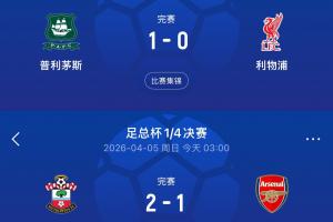 體育資訊04月05日訊 足總杯1/4決賽爆出冷門,英冠第7南安普頓2-1擊敗英超第1阿森納,槍手止步足總杯8強(qiáng)。
