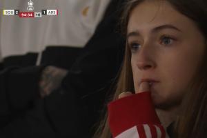 當(dāng)謝赫·查爾斯攻入絕殺球后,球場(chǎng)看臺(tái)上的球迷呈現(xiàn)出兩種極端情緒,圣徒球迷興奮狂喜,而鏡頭則拍到有阿森納小球迷拿衣服抹眼淚,父親趕忙送上擁抱和安慰。