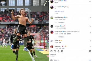 卡爾也在賽后通過(guò)社媒曬出自己進(jìn)球后的脫衣慶祝照,并配文:“重大的勝利????42”。