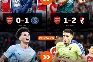 在接近1年的時(shí)間里,阿森納首次在各項(xiàng)賽事中遭遇連敗。2024-25賽季,阿森納曾在面對巴黎圣日耳曼和伯恩茅斯時(shí)遭遇連敗,分別以0-1和1-2的比分不敵對手。