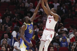 體育資訊4月6日訊 勇士主場(chǎng)迎戰(zhàn)火箭,上半場(chǎng)53-55落后2分。