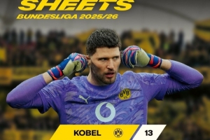 體育資訊4月6日訊 多特門將科貝爾本賽季聯(lián)賽完成13場零封,德甲門將零封場次最多。