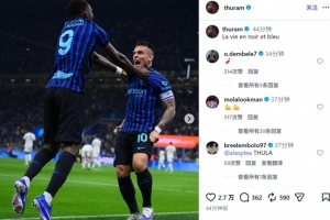 他也在賽后通過社媒曬出自己和勞塔羅的慶祝合照,并配文:“藍(lán)黑人生。”