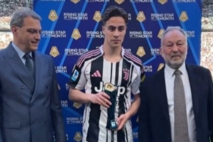 體育資訊4月7日訊 尤文在本輪意甲對(duì)陣熱那亞,前鋒伊爾迪茲在賽前領(lǐng)取了意甲3月最佳年輕球員獎(jiǎng)杯。