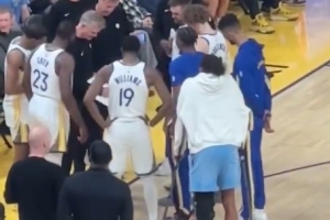 GIF-穆迪拄拐在場邊觀戰(zhàn) 在隊(duì)友戰(zhàn)術(shù)圈外徘徊