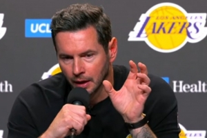 記者:“嘿,JJ。哦,抱歉,你先說吧。顯然,勒布朗的角色最近發(fā)生了很大變化。當(dāng)你談到展現(xiàn)斗志時,看到像勒布朗這樣41歲的老將依然在場上拼盡全力,其他人自然也不敢松懈。你剛才提到你們開了個會,他當(dāng)時在會上給大家傳達了什么信息?”
