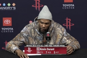 體育資訊4月10日訊 NBA常規(guī)賽,火箭113-102戰(zhàn)勝76人。賽后,火箭球星杜蘭特接受了采訪(fǎng)。以下是采訪(fǎng)全文。