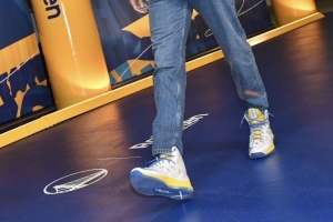 “他應(yīng)該是從球鞋珍藏柜里拿出來(lái)的吧,”詹姆斯笑著說(shuō),“我記得他穿過(guò)那雙,我不知道是不是他的新秀年。他是哪一年進(jìn)聯(lián)盟的,10-11年嗎?好吧,是09-10年,所以那是詹姆斯10代吧,我記得他以前在比賽中穿過(guò)那雙,我不確定他是不是有一雙額外的,這雙可能就是那雙,他應(yīng)該是從球鞋珍藏柜里拿出來(lái)的吧。”