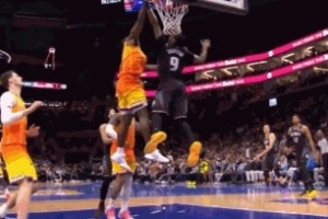GIF-新秀詹姆斯隔扣奧薩爾被犯規(guī) 活塞挑戰(zhàn)成功