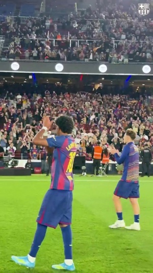 體育資訊04月12日訊 加泰德比,巴薩4-1戰(zhàn)勝西班牙人。巴薩球員賽后謝場,全場球迷6萬多球迷高喊“是的,我們可以”,鼓勵(lì)球隊(duì)逆轉(zhuǎn)馬競。