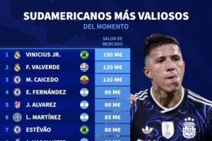 南美球員德轉(zhuǎn)身價(jià)榜: