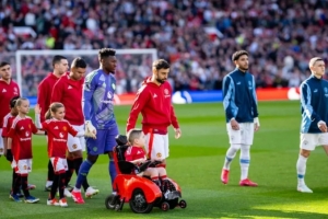 還有一位名叫博比·摩爾的男孩,來(lái)自貝爾法斯特,患有脊髓性肌萎縮癥。他曾給曼聯(lián)隊(duì)長(zhǎng)寫(xiě)信,B費(fèi)把博比帶到卡靈頓訓(xùn)練基地,并游說(shuō)讓他成為曼聯(lián)首位坐輪椅的球童。去年四月曼徹斯特德比,他們一起攜手入場(chǎng)。