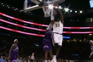 GIF-詹姆斯頂著人強打上籃2+1