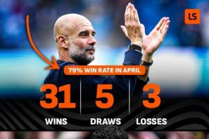 瓜迪奧拉:31勝5平3負(fù),勝率79%