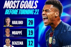 體育資訊4月14日訊 歐冠官方統(tǒng)計了U21球員的歐冠歷史進(jìn)球情況,哈蘭德力壓姆巴佩居首。