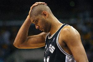 卡特:“在我和其他場(chǎng)上八個(gè)人的眼里,那場(chǎng)面確實(shí)很逗。他在地上和裁判抱怨,你就停在那里說(shuō)‘你想要這個(gè)嗎?’然后去扣籃。等你跑回防時(shí),兩人開(kāi)始推搡。我記得我把你拉開(kāi)了,但這更像是一種蓄力,好讓你能沖回去。最有趣的是,平時(shí)總是一臉淡定的蒂姆·鄧肯在那次沖突中竟然也沖到了最前面,去對(duì)付對(duì)方個(gè)頭最大的球員。大家都知道蒂姆平時(shí)很低調(diào),而肯揚(yáng)·馬丁則是那種會(huì)直接懟到你臉上的激情球員。”