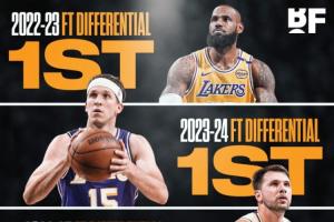 體育資訊03月17日訊 據(jù)統(tǒng)計,截至今日賽前,湖人與對手的罰球差近4個賽季第3次領(lǐng)跑聯(lián)盟。
