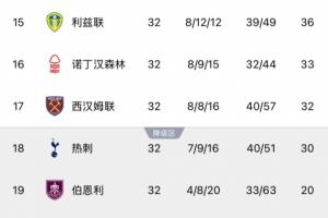 此戰(zhàn)過后,利茲聯(lián)積36分排名英超第十五,已經(jīng)高出降級區(qū)的熱刺6分,在僅剩6輪的情況下保級形勢一片大好。