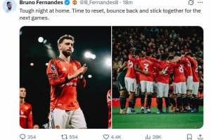 本場比賽B費(fèi)送出精彩助攻幫助卡塞米羅破門,他也在個(gè)人社媒曬出本場照片鼓勵(lì)球隊(duì),寫道:“主場經(jīng)歷一場艱難的失利,現(xiàn)在是時(shí)候進(jìn)行休整,我們會(huì)在下一場比賽團(tuán)結(jié)一致重振旗鼓?!?/p>