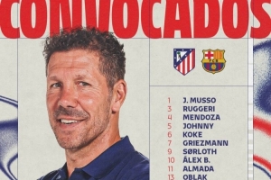 體育資訊4月14日訊 北京時間明天凌晨,馬競將在歐冠1/4決賽次回合比賽中主場對陣巴薩,首回合馬競2-0取勝,馬競公布了此役的球員名單。吉梅內(nèi)斯、漢茨科、普比爾、巴里奧斯缺席,卡爾多索、奧布拉克回歸。
