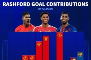 體育資訊4月15日訊 巴薩將在本輪歐冠再戰(zhàn)馬競(jìng),拉什福德的表現(xiàn)將至關(guān)重要,《轉(zhuǎn)會(huì)市場(chǎng)》統(tǒng)計(jì)顯示拉什福德本賽季直接參與進(jìn)球數(shù)已可排在生涯第4位。