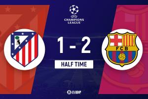 半場(chǎng)結(jié)束,巴薩暫2-1馬競(jìng)。