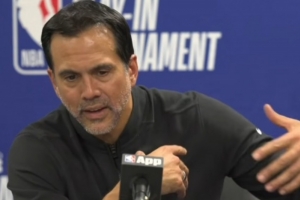 體育資訊4月15日訊 NBA東部附加賽九十名的爭(zhēng)奪,熱火加時(shí)126-127惜敗黃蜂。賽后熱火主帥斯波爾斯特拉接受了媒體采訪,談到了阿德巴約受傷的情況,以下為采訪全文。