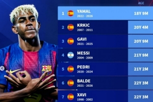 1、亞馬爾 18歲9個(gè)月