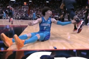值得一提的是,去年10月28日黃蜂客場(chǎng)117-144不敵熱火的比賽中,三球在倒地后也曾抓過阿德巴約小腿。