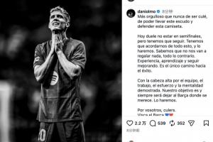 體育資訊4月15日訊 歐冠1/4決賽次回合,巴薩客場(chǎng)2比1擊敗馬競(jìng),最終以總比分2-3出局。賽后,奧爾莫社媒發(fā)文誓言帶巴薩重回應(yīng)有位置。