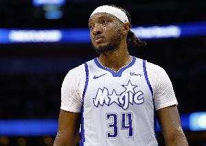 體育資訊4月16日訊 附加賽上半場,魔術(shù)客場55-59落后76人4分。