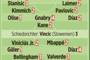 體育資訊4月16日訊 拜仁在本輪歐冠主場(chǎng)4-3再勝皇馬,《圖片報(bào)》按照慣例進(jìn)行了賽后評(píng)分。卡馬文加獲得了超出常規(guī)范疇的6分(代表超級(jí)糟糕的表現(xiàn))。