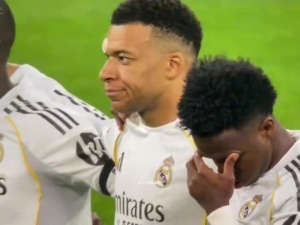 體育資訊04月16日訊 歐冠1/4決賽拜仁vs皇馬賽前,兩隊(duì)為致敬離世的皇馬舊將、1982年世界杯西班牙國(guó)家隊(duì)主帥何塞?埃米利奧?桑塔馬里亞舉行默哀儀式。現(xiàn)場(chǎng)有部分德國(guó)球迷響起陣陣喧嘩,姆巴佩搖頭表示不滿。