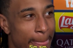 播吧4月16日訊 歐冠1/4決賽次回合比賽,拜仁主場(chǎng)4-3擊敗皇馬,兩回合總比分6-4晉級(jí),奧利塞攻入關(guān)鍵進(jìn)球,當(dāng)選此役最佳球員,賽后他接受采訪時(shí)發(fā)生了有趣的一幕。