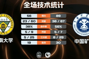 中國(guó)礦業(yè)大學(xué):楊奎14分7籃板、李耀祖17分6籃板、王志楠12分3助攻、李亮13分、郭騏寧9分4籃板6助攻、董子墨6分2籃板3助攻2搶斷、周思凡4分3助攻。