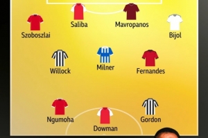 體育資訊3月17日訊 英超第30輪結(jié)束,迪尼在BBC專欄評選本輪英超最佳陣容,B費(fèi)、索博斯洛伊在列,恩古莫哈、道曼入圍。