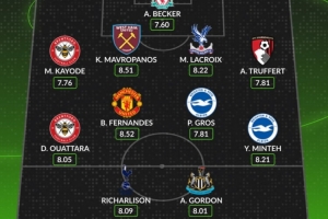 后衛(wèi):卡約德(布倫特福德)、馬夫羅帕諾斯(西漢姆)、拉克魯瓦(水晶宮)、特呂費爾(伯恩茅斯)