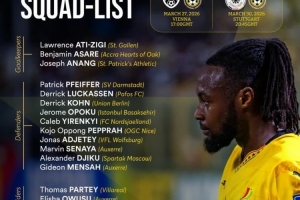 體育資訊3月17日訊 加納國家隊公布了新一期球員名單,塞梅尼奧在列,加納將在下個國際比賽日的友誼賽中對陣奧地利、德國。