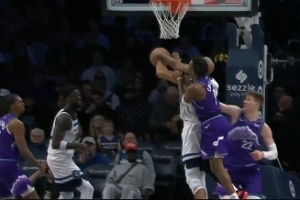 GIF-戈貝爾扣籃被科利爾兇狠犯規(guī) 要發(fā)作被蘭德?tīng)柋ё?amp;科利爾一級(jí)惡犯