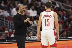 談及申京因傷缺陣,球隊啟用芬尼-史密斯擔任首發(fā),沒有安排謝潑德或者卡佩拉進入首發(fā)陣容的決定,烏度卡說道:“我們既沒讓謝潑德這樣的小個子首發(fā),也沒讓卡佩拉這種大個子首發(fā),就是為了能無限換防對手相對小一些的陣容?!?/p>