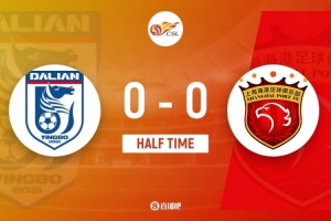 傷停補時3分鐘。上半場比賽結(jié)束,大連英博0-0上海海港。