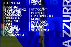 后衛(wèi):巴斯托尼(國(guó)米)、布翁喬爾諾(那不勒斯)、卡拉菲奧里(阿森納)、坎比亞索(尤文)、迭戈·庫(kù)博拉(巴黎FC)、迪馬爾科(國(guó)米)、加蒂(尤文)、曼奇尼(羅馬)、帕萊斯特拉(卡利亞里)、斯卡爾維尼(亞特蘭大)、斯皮納佐拉(那不勒斯)